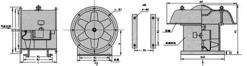2、風機出廠時法蘭一般不打孔,n-Φ1僅供參考,若要打孔請用戶在訂貨時說明。