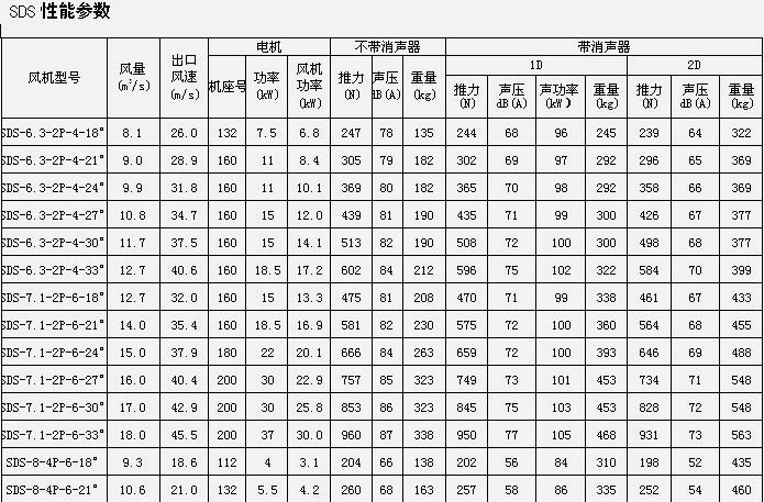 SDS隧道射流風機是本公司采用先進技術工藝所研制開發的新產品,公司充分調研全國各地地鐵、公路、鐵路隧道等工程,并咨詢有關隧道設計院及隧道安裝公司的專家,掌握第一手風機使用條件、產品技術要求等相關資料,使開發的隧道射流風機產品效率和比A聲級等明顯優于常規軸流風機,其各項性能指標及耐腐蝕性、耐高溫性、可靠性等技術要求完全適應各類地鐵、隧道的使用,優化系統工程配套,居國內同行領先水平。隧道射流風機外殼由進口專用機床旋壓翻邊成形,既保證機殼的同軸度和強度,又保證葉片徑向間隙,表面噴塑處理,外形美觀且防腐性能優良。風機葉片、輪轂由高壓鑄造機鋁合金模壓成形,產品強度高、一致性好,保證良好的風機運轉平穩性。風機配套全封閉鼠籠式電機,絕緣等級H級,防腐等級IP55,適應各種隧道環境的使用要求。 隧道射流風機分帶消聲器和不帶消聲器[進出口加集(散)流器]二種規格,又分單向射流風機(SDS)和可逆式(雙向)射流風機[SDS(R)]二種通風形式。可逆式射流風機在緊急狀態下的正反轉切換時間極為重要,SDS(R)可逆式射流風機有電子式和機械式二種切換方法,可以在30秒鐘內正反轉切換到風機額定轉速。 SDS隧道射流風機規格從Ф630mm~Ф1600mm,最大推力3500N,風量大小可以通過改變葉片數和葉片角度來滿足要求,對任一負載和工況均可選擇到合適的風機。 |