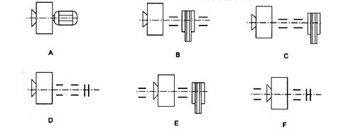 B、C、E式為皮帶傳動,D、F式為聯軸器傳動。